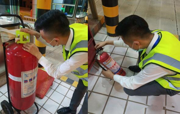 加強夏季隱患排查,防患未“燃”。對站內滅火器進行徹查,檢查壓把、保險銷、塑料封條、壓把外觀應為正常無變形、生銹或有影響使用的故障。保險銷應無生銹,封條完整, 檢查皮管是否有龜裂等。確保滅火器不過期,不生銹,便于使用時可以安全操作。