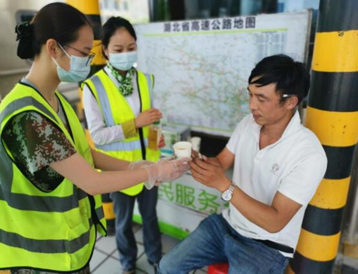在等待車輛維修期間,細心的收費員發(fā)現(xiàn)師傅當時狀態(tài)不佳,并伴有臉色泛白、頻繁出汗,一番詢問過后得知車輛在高速上行駛時就出現(xiàn)故障,不敢開啟空調(diào)制冷,當班班長意識到司機可能出現(xiàn)中暑癥狀,立即從便民醫(yī)藥箱中拿出藿香正氣水助其服用,事后迅速取來冰水給司機解渴并采取濕毛巾敷臉的方法,全力緩解中暑癥狀。半小時后,癥狀已初步緩解,此時救援車輛趕來,當班班長又馬不停蹄的趕去故障車旁配合救援人員將車輛脫離收費現(xiàn)場。臨走之前,司機師傅再次表達了感激之情并對收費站工作人員的服務連連稱贊。