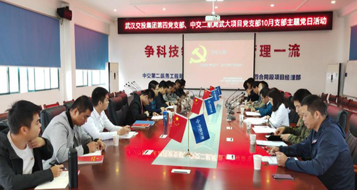 為提高黨員干部的科學(xué)管理水平,促進(jìn)黨員干部勇于擔(dān)當(dāng)、積極作為、拼搏趕超、不斷提升自身的管理水平和綜合素質(zhì),10月16日上午武漢交投集團(tuán)第四黨支部聯(lián)合中交二航局武大高速公路4標(biāo)段黨支部,在項(xiàng)目部會(huì)議室開(kāi)展了以“創(chuàng)建黨員‘責(zé)任區(qū)’、助力武漢‘軍運(yùn)會(huì)’”為主題的黨日活動(dòng)。雙方黨員、發(fā)展對(duì)象及群眾代表積極參加黨日活動(dòng)。