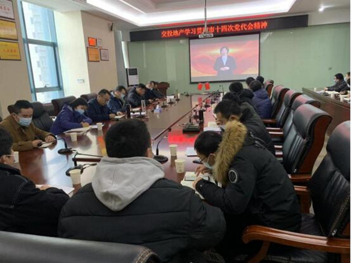 2022年2月18日,交投集團武松、南四環公司聯合黨支部在武松項目公司會議室集中收看學習貫徹市第十四次黨代會精神示范宣講精品網課。