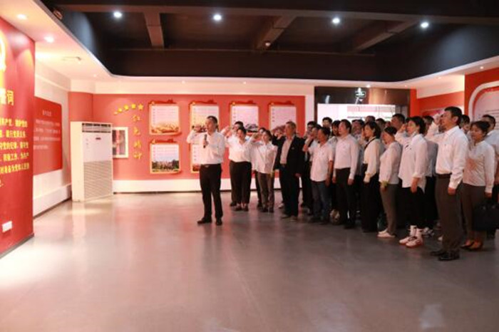 在黨員宣誓廳內,由組織、宣傳委員余皓同志領誓,三十余名黨員面對鮮紅的黨旗,高舉右拳:“我志愿加入中國共產黨,擁護黨的綱領,遵守黨的章程……”大家神情莊重、聲音鏗鏘,用錚錚誓言彰顯共產黨人的初心使命。