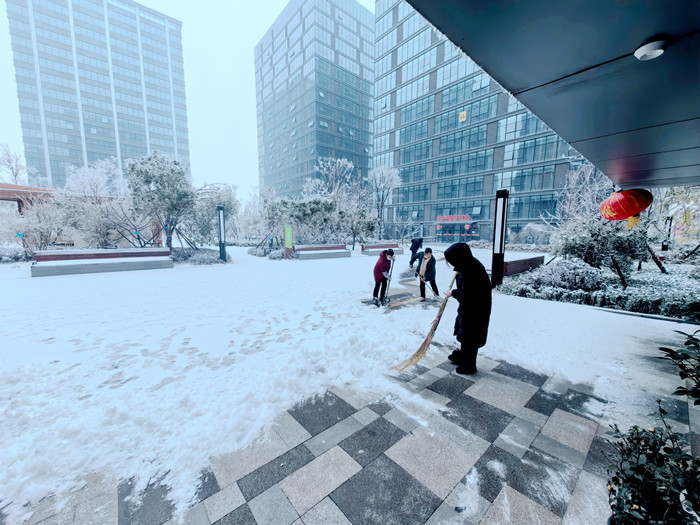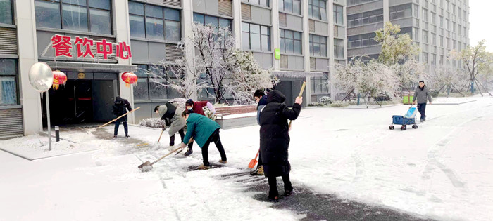 為積極應對武漢低溫雨雪冰凍天氣,保障柴泊湖武漢康養中心及周邊道路的安全暢通,連日來,康養中心組織全體員工,堅守一線,以雪為令、聞雪而動,采取多種舉措除冰雪、保安全,全力以赴開展清雪作業,為入住長者提供安全舒適的居住環境。