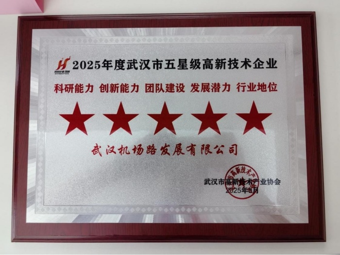 8月15日,由武漢市高新技術產業協會依據《武漢市高新技術企業創新能力評價標準》,以科研能力、創新能力、團隊建設、發展潛力、行業地位等五個維度為評價基準,機場高速公司獲評“武漢市五星級高新技術企業”,全面彰顯企業核心競爭力。