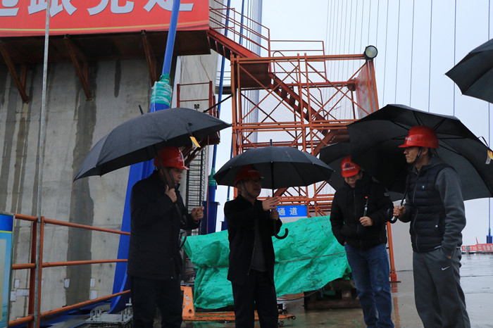 學(xué)習(xí)團(tuán)一行冒雨參觀青山長江大橋項(xiàng)目