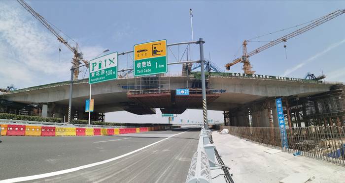 作為武漢市的門戶道路,機場二通道是武漢機場通往市區主要出行通道,車流量大、社會關注度高、安保任務重,施工期間歷經十余次國家、省、市等各級領導出行安保任務。為確保機場二通道車流通暢和道路上方施工安全,北四環公司主動作為,在各級部門的支持下,堅決推行“四個高度”安全管理理念,即安全措施高度保障、安全氛圍高度營造、安全費用高度投入、安全管理高度有效,有力踐行了“不讓一粒石子落入機場二通道內”的承諾。與此同時,通過科學組織、統籌安排,北四環公司在施工過程中進一步優化混凝土配合比及施工方案,嚴控施工過程,對每道工序進行嚴格把關,最終實現了懸澆梁精準合龍,成橋線形平順、箱體內實外美的質量目標。