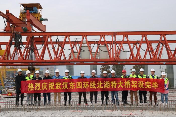 2019年11月21日上午10點58分,隨著架橋機將北湖特大橋最后一片30米長、75噸重的預(yù)制T梁精準(zhǔn)拼裝到位,武漢交投集團東四環(huán)線高速公路北湖特大橋主橋順利實現(xiàn)全橋貫通,為東四環(huán)線項目“年底主線貫通”和打贏“三年攻堅”計劃奠定了堅實基礎(chǔ)。