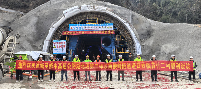 12月25日,由武漢交投集團投資建設的通城至修水高速公路(湖北段)南樓嶺隧道進口右幅首件二襯順利完成澆筑,標志著南嶺樓隧道施工步入新階段,為項目按期完成進度目標打下了堅實基礎。