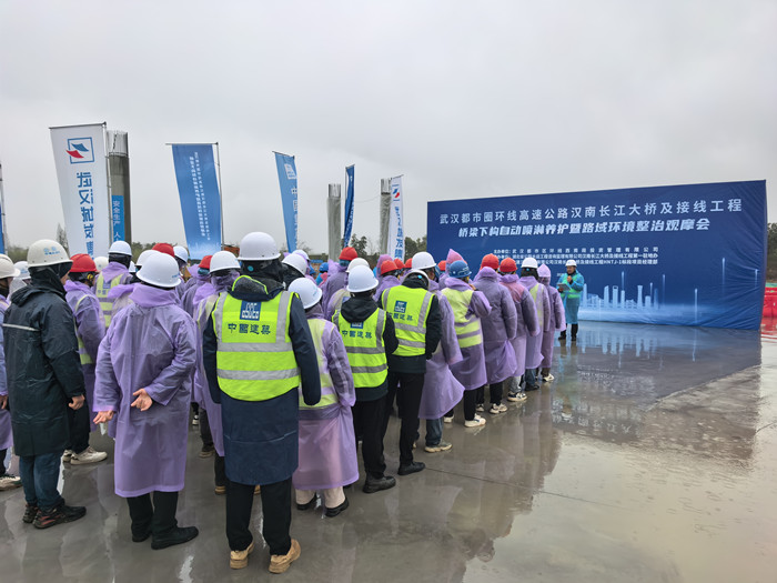 3月28日上午,為提升橋梁下構養護水平,加強路域環境整治工作,落實武漢都市圈環線高速公路漢南長江大橋及接線工程路域環境整治相關要求,漢南橋公司組織各參建單位到中建三局承建的土建一標開展橋梁下構自動噴淋養護及路域環境整治現場觀摩交流和集中學習活動。項目公司、設計單位、駐地辦、中心試驗室、施工單位代表共計80余人參加本次活動,共同探討和交流橋梁下構混凝土養護與路域環境整治的先進經驗和技術。