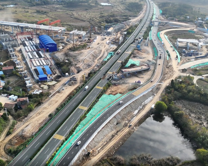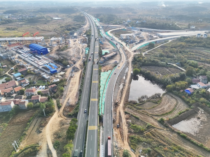 2025年11月11日,武漢都市圈環線高速公路黃陂至新洲段項目涉路施工取得重大突破,韓集樞紐互通跨武麻高速永臨結合保通道路通車,該互通段武麻高速武漢方向臨時封閉,全面開啟跨武麻高速鋼箱梁吊裝施工。