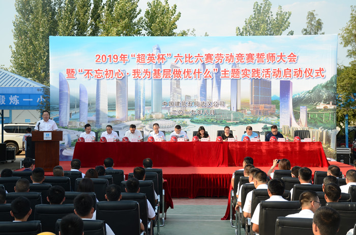 活動現場首先舉行了2019年北四環“六比六賽”勞動競賽誓師大會暨“不忘初心,我為基層做優什么”主題實踐活動啟動儀式。市總工會、建設工會、市團委、北四環公司以及中建五局領導為各項目單位進行了授旗和頒獎。