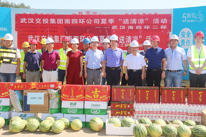 入夏以來,武漢持續多日出現高溫天氣,交投集團各重點工程建設現場、營運現場的基層職工依然堅守一線、揮汗如雨,全面確保工程按時序推進,確保企業生產經營活動正常開展。自6月底開始,武漢交投集團“送清涼”高溫慰問活動全面啟動。交投集團各項目分管領導分組帶隊深入到各項目一線,把關懷和囑托送給廣大基層員工,全體一線員工將諄諄叮囑化為昂揚前進的最大動力: