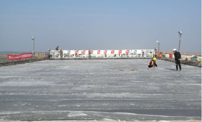 天興洲灘地橋最后一跨完成澆筑后養(yǎng)護