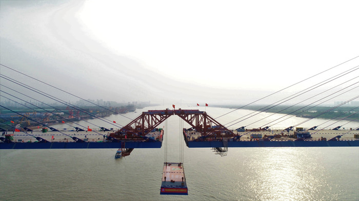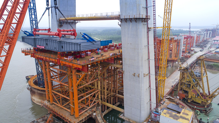 2018 年 8 月 8 日,主橋中跨首片鋼梁架設成功。