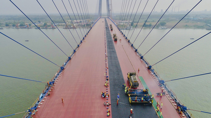 2019 年 11 月 23 日,主橋瀝青面層完成,標志二期路面施工完成。