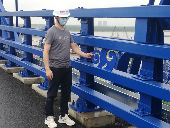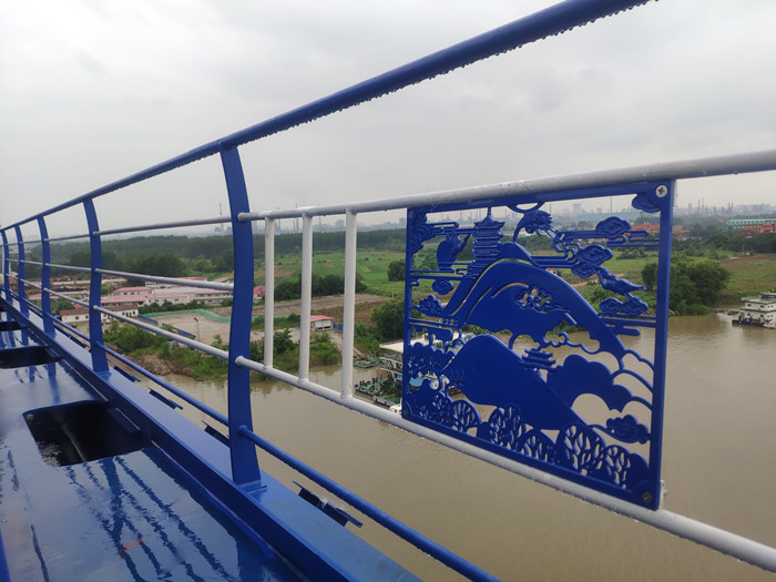 在“世界級尺度”之外,青山橋還有諸多細節之美。邊側防撞護欄每四節增設一塊浪花造型的裝飾板,為鋼筋鐵骨添了幾分靈動;外側欄桿上加入黃鶴樓等造型,與江城各地標建筑遙相呼應;橋面中間的隔離欄上加裝綠色竹節造型的防眩板,既醒目又清新……觀者賞心悅目之余,不禁贊嘆建設者的用心與巧思。