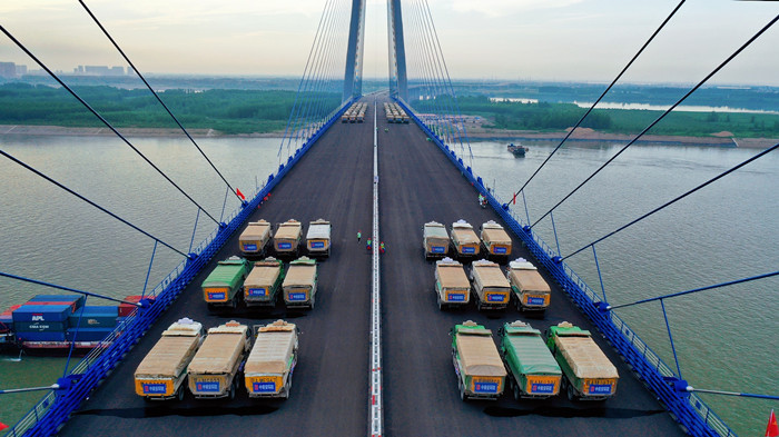 青山橋位于天興洲長江大橋和陽邏長江大橋之間,是武漢四環線東段跨越長江的控制性工程。青山橋及四環線全線貫通后,將有效串聯六大新城組群,形成內聯外通及進出轉換的物流便捷大通道,分流三環線的貨運壓力,進一步完善武漢“環線+射線”路網結構,緩解城區交通擁堵。