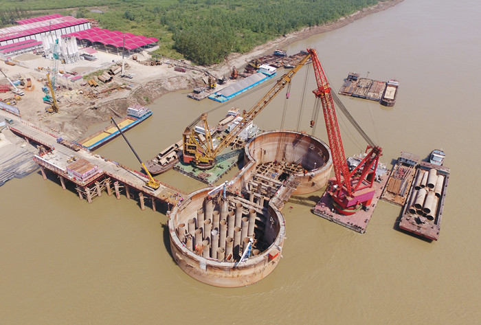 2016 年 2 月 21 日,主橋南主墩基礎鉆孔樁全部施工完成。