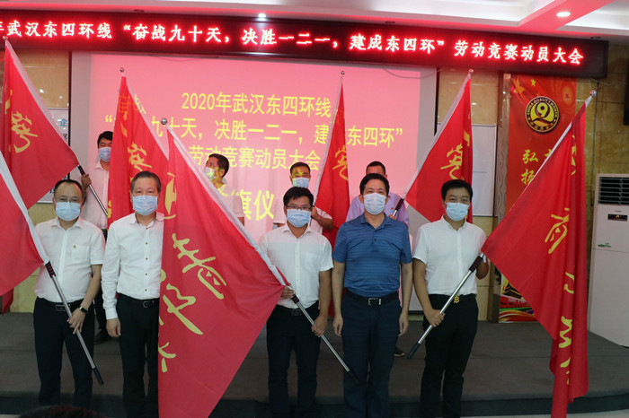 動員大會上,陳順平發(fā)表了主題為《克難攻堅擔重任、凝心聚力圓四環(huán)》的重要講話。他指出,建成四環(huán)線是政治任務,是使命擔當,是重大機遇,意義非凡。開展勞動競賽的主要目的是希望東四環(huán)項目全面提速、全面沖刺、奮戰(zhàn)九十天、決勝一二一,年底實現(xiàn)通車總目標。全體參建單位要形成大干快上的“態(tài)勢”,拉開全力沖刺、全面競賽的“架勢”,營造精神振奮、勇奪第一的“氣勢”。在“爬坡過坎”“滾石上山”的硬仗階段,他強調,一要統(tǒng)一思想。各單位要思想統(tǒng)一,步調一致,進一步弘揚“生命至上、舉國同心、舍身忘死、尊重科學、命運與共”的偉大抗疫精神,將項目建成通車作為一項政治任務高效完成。二要強化措施。做到四個“堅持”:堅持優(yōu)化方案,做到交叉作業(yè),上足資源投入,及時計量支付;堅持提升建設效率,“當日事當日畢”;堅持后方領導親自掛帥、親自出征、親自調度、親自協(xié)調,以更強的力度、更實的舉措推動項目建設;三要確保質量。樹立項目全壽命周期理念,做到五個“注重”,注重工程實體質量,注重外在形象質量,注重工藝工法,注重工程細節(jié),注重成品保護,確保工程質量優(yōu)良。四要繼續(xù)做好常態(tài)化疫情防控工作。堅持各項防疫制度,消除麻痹大意思想,做到生產經營和防疫工作兩手抓,兩手硬。