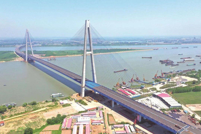 青山長(zhǎng)江大橋預(yù)計(jì)今年年底通車(chē)。通車(chē)后,這座大橋?qū)⒊蔀檫B接武漢青山和黃陂的一條新通道,進(jìn)一步優(yōu)化武漢“環(huán)線+射線”路網(wǎng)結(jié)構(gòu),對(duì)緩解武漢過(guò)江交通壓力、增強(qiáng)武漢國(guó)家綜合交通樞紐地位、打造中部地區(qū)現(xiàn)代物流基地具有重要意義。