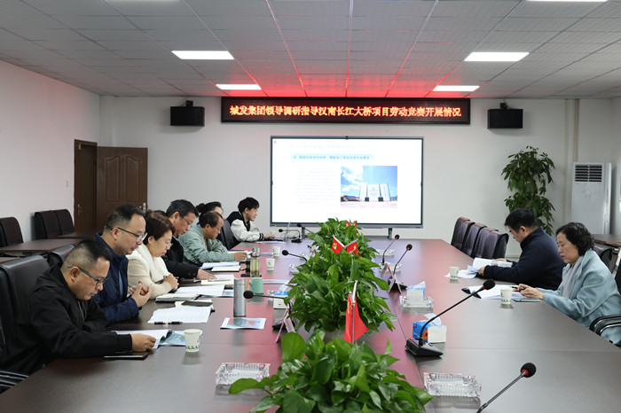 11月15日,武漢城發(fā)集團副總經(jīng)濟師、婦聯(lián)主席、工會副主席高萍一行調研指導漢南長江大橋項目省級引領性勞動競賽開展情況,武漢交投集團工會主席,機場高速公司黨委副書記、總經(jīng)理、副董事長程湧陪同調研。