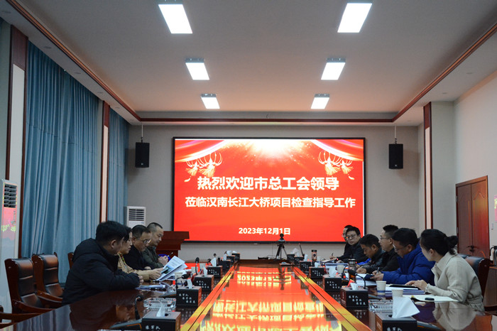 武漢都市圈環線高速公路漢南長江大橋及接線工程項目相關負責人為督導調研組詳細匯報了項目開展省級引領性勞動競賽的情況,督導組深入項目拌合站和長江大橋錨碇施工現場查看了工程進展及施工工藝標準化建設情況,對武漢都市圈環線高速公路漢南長江大橋及接線工程項目推進勞動競賽,助力工程攻堅的亮點做法給予了充分肯定。