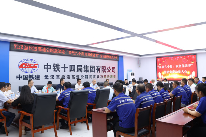 七月驕陽紅似火,大地草木正蔥蘢。7月9日,為號召全體參建者凝心聚力、攻堅克難、團(tuán)結(jié)協(xié)作,全力以赴完成各項施工任務(wù),由武漢交投集團(tuán)主辦、武松高速項目部承辦的“奮戰(zhàn)九個月,攻堅保通車”勞動競賽活動正式啟動。武漢交投集團(tuán)副總經(jīng)理陳青標(biāo)、中鐵十四局二公司總經(jīng)理孔德芒出席會議。