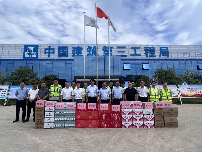 2024年8月1日,咸寧市交通運輸局黨組書記、局長、一級調研員彭光平、嘉魚縣委副書記、縣長胡金云到武漢都市圈環線高速公路漢南長江大橋及接線工程項目嘉魚縣三個標段開展實地調研,對城發集團所屬交投集團漢南長江大橋項目公司積極投身嘉魚縣防汛救災工作送上感謝信,同時看望慰問一線高溫作業勞動者,代表咸寧市委、市政府和咸寧人民,向全線參建單位勞動者致以崇高敬意、親切慰問和衷心感謝,勉勵一線參建人員實干擔當、奮力拼搏,高質量完成武漢都市圈環線建設任務,為推動咸寧高質量發展作出更大貢獻。