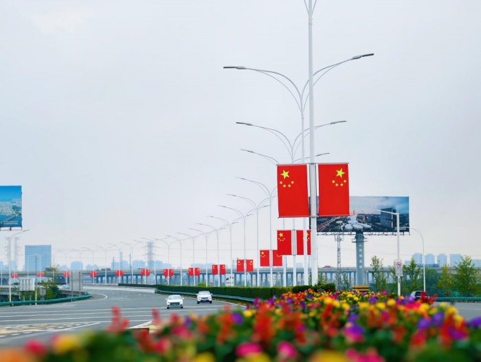 肩負“楚天第一門”城市重要窗口使命的機場二通道,眼下正以嶄新的節(jié)日“盛裝”亮相——190面五星紅旗沿道路兩側(cè)次第舒展,如絢爛紅綢蜿蜒繞路,似燎原火焰熾燃征途,將醇厚的喜慶氛圍鋪滿每一公里旅程;沿線邊坡開展“地毯式”雜草清理與精細化草坪養(yǎng)護,千畝綠意如翡翠織毯向天際延展;筆柏列陣挺拔如儀仗,宛若忠誠的綠色衛(wèi)士守護坦途;新優(yōu)月季品種如約綻蕊,瓣瓣含香點綴其間。這抹清新的“生態(tài)綠”與耀眼的“中國紅”交相輝映,勾勒出一幅靈動鮮活的路域風(fēng)景畫,成為途經(jīng)旅客眼中的“移動風(fēng)景線”。