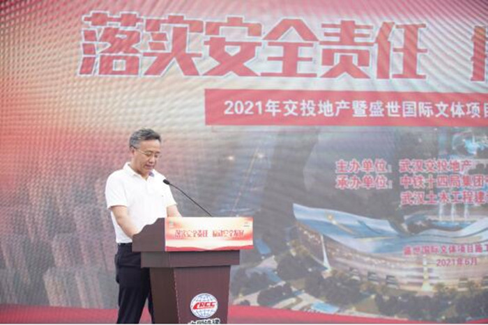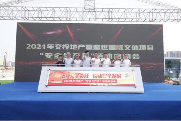 今年6月是全國第20個(gè)“安全生產(chǎn)月”,為深入貫徹落實(shí)省、市和武漢交投集團(tuán)關(guān)于安全生產(chǎn)工作的相關(guān)要求,全面落實(shí)企業(yè)安全生產(chǎn)主體責(zé)任,營造“人人講安全、人人要安全、人人會(huì)安全”的濃厚氛圍,6月2日上午,武漢交投集團(tuán)和縱盛地產(chǎn)公司在盛世國際文體項(xiàng)目施工現(xiàn)場舉辦了2021年“安全生產(chǎn)月”活動(dòng)啟動(dòng)會(huì)。黃陂區(qū)橫店街道人大主任羅學(xué)峰、交投集團(tuán)副總經(jīng)理文兵、交投集團(tuán)安全部部長汪幫平、交投集團(tuán)和縱盛地產(chǎn)公司總經(jīng)理尹水章等領(lǐng)導(dǎo)蒞臨指導(dǎo),地產(chǎn)公司各部門負(fù)責(zé)人、各項(xiàng)目辦負(fù)責(zé)人、各項(xiàng)目施工、監(jiān)理單位代表參加了啟動(dòng)會(huì)。