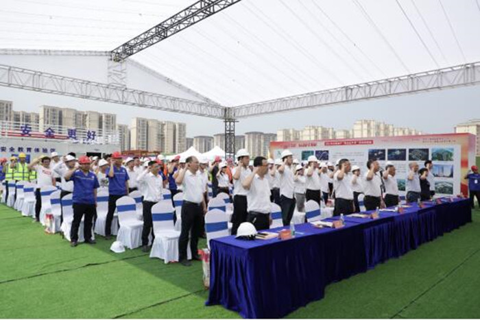 活動(dòng)中,施工、監(jiān)理單位代表作表態(tài)發(fā)言,全體參會(huì)人員進(jìn)行了集體安全宣誓,集中觀看了應(yīng)急演練視頻,并在盛世國際文體項(xiàng)目實(shí)體安全體驗(yàn)區(qū)進(jìn)行了現(xiàn)場觀摩。